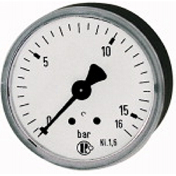 Standardmano., Kunststoffgeh., Einfachskala in bar, Anschluss hinten zentrisch, G 1/8, Güteklasse 1,6, Messber. 0 - 25,0 bar, Ø 40. Rohrfedermanometer in Standardausführung.