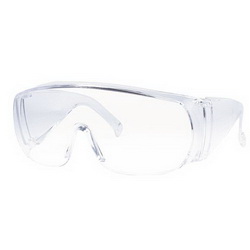 Schutzbrille, die durch großzügige Gestaltung zum Tragen über Korrektionsbrillen geeignet ist.