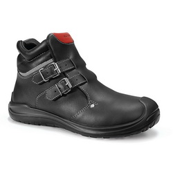 Material und Ausstattung - Rindleder - Lederfutter - Geschlossene Lasche - Ganzflächige Einlegesohle ESD PRO black mit Anteilen aus recycelten Materialien - PU-Spitzenschutz Besonderheiten - Praktischer Zweischnallen-Verschluss für individuelle Anpassung an den Fuß - Gepolsterte Schutzmanschette - Nähte aus hitzebeständigem Nomex® Garn Laufsohle GUMMI/PU Sohle SKY
