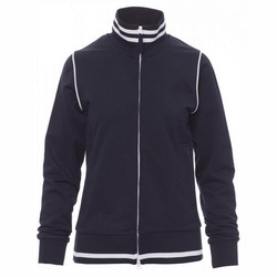 - kontrastfarbiger Einfassung an den Schultern, am Reißverschlussrand und auf dem Rücken