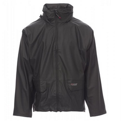- im Kragen einrollbare Kapuze, regulierbare Ärmelbündchen mit Druckknöpfen