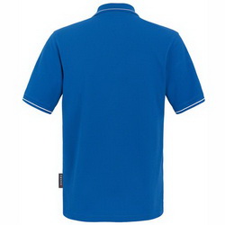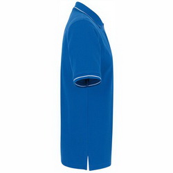 Kontraststreifen im Polokragen und an den Armbündchen.