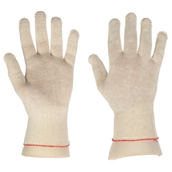 Leichter Strickhandschuh aus 100 % Baumwolle. 6 cm breites Elastikbündchen.