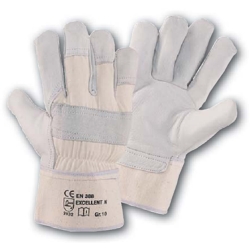 Arbeitshandschuhe aus Rindnarbenleder mit Doppelnähten, weißem Rücken und Canvasstulpe.