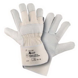 Rindnarbenlederhandschuhe, natur, Handrücken und Stulpe aus weißem