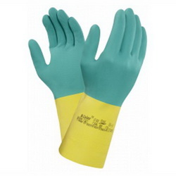 - Zuverlässige Abweisung der verschiedensten Chemikalien dank Latex-/Neopren-Kombi.