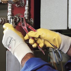 Schutzhandschuh. Die hochwertige Nitrilbeschichtung garantiert sehr gute physikalische