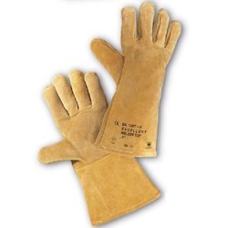 Schweißerhandschuhe aus kräftigem, weichem Rindspaltleder. Länge: 35 cm