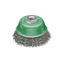 Topfbürsten mit gewelltem Draht werden auf Winkelschleifern