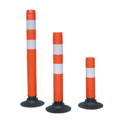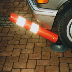 Der Leitzylinder besteht aus rotem Kunststoff mit reflektierenden Ringen.