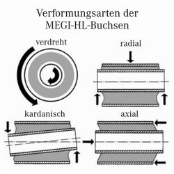 Megi-HL-Buchsen können radial, axial und auf Verdrehung beansprucht werden, ohne daß