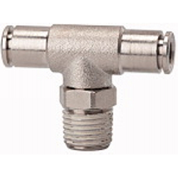 T-Steckverschraubung »metallica«, drehbar, R 3/8 a., für Schlauch-Außen-Ø 14 mm, Arbeitsdruck max. 16 bar, Messing vernickelt. Schnellsteckverbindungen komplett aus Messing vernickelt. Die Teile mit zylindrischem Gewinde sind mit einem FKM-O-Ring ausgestattet. Die konischen Gewinde sind mit der Dispersion preCOTE 5 beschichtet, so dass alle Verbindungen dieser Serie auch bei hohen Temperaturen eingesetzt werden können (Medium Druckluft).
