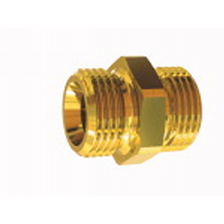 Doppelgewindenippel, G 3/8 a. links, G 3/8 a. links, SW 19, Messing, Arbeitsdruck max. 25 bar, Betriebstemp. max. 150 °C.