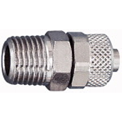 Gerade Einschraubverschraubung, AG konisch, R 3/8, für Schlauch 10/8 mm, SW 17, Arbeitsdruck max. 18 bar, Messing vernickelt.