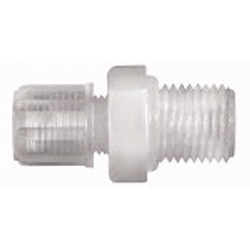 Gerade Einschraubverschraubung, G 3/8 a., für Schlauch 4/6 mm, SW 22, Arbeitsdruck max. 10 bar (20 °C) / max. 1 bar (170 °C), PFA. Perfluoralkoxy (PFA): ein Fluorkunststoff, der die gleiche chemische Resistenz wie PTFE hat, aber bedeutend höhere Festigkeitswerte aufweist und für Temperaturen von max. 200 °C geeignet ist.