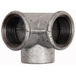 Winkelverteiler 221, IG/IG/IG, Rp 1/2, Betriebstemperatur -20 °C bis 300 °C, schwarzer Temperguss, feuerverzinkt, DIN EN 10242. Nach DIN EN 10242 (vormals 2950). Die klassische und am weitesten verbreitete Verschraubungsserie im Rohrleitungsbau. Unsere Tempergussfittings zeichnen sich durch eine hohe mechanische Beanspruchbarkeit und durch eine Oberflächengüte nach DIN 2444 aus. Sie sind vollkommen mit einer Reinzinkschicht überzogen und somit trinkwassergeeignet sowie gegen Rost geschützt. Diese Tempergussfittings finden Verwendung im Maschinenbau, Außenleitungen, Kaltwasserleitungen und in Heizungsleitungen.