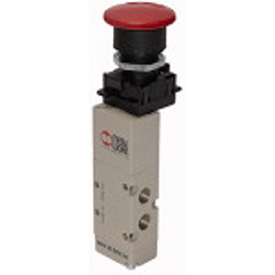 5/2-Wegeventil, manuell, Pilztaster m. Notrastung, monostabil, Anschluss G1/8, Betri.dr. 2,5-10bar, Betr.temp. -10°C bis 60°C, Alu.