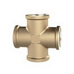 Kreuzstück, 4 x Innengewinde, G 3/4, Druck 16 bar, Messing blank