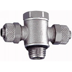T-Schwenkverschraubung, mit O-Ring, G 1/8 a., für Schlauch 5/3 mm, SW 14, Arbeitsdruck max. 18 bar, Messing vernickelt.