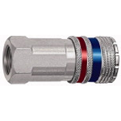 Sicherheitskupplung NW 10, Stahl/Messing verz., G 3/8 IG, Betriebsdruck max. 16 bar, Mediums-/Umgebungstemp. -20 °C bis 100 °C. Hochwertige, robuste und langlebige, mit einer Hand bedienbare Schnellverschlusskupplung in Sicherheitsausführung mit sehr hoher Durchflussleistung bei geringem Druckabfall. Die Entriegelung erfolgt vollautomatisch in zwei Stufen. Die Kupplung wird vor dem endgültigen Entkuppeln entlüftet. Dabei wird der Kupplungsstecker erst freigegeben, wenn der Restdruck von ca. 0,3 bar unterschritten wurde. Somit wird der berüchtigte Peitschenhiebeffekt verhindert und das Risiko der Verletzung des Bedienpersonals praktisch ausgeschlossen.