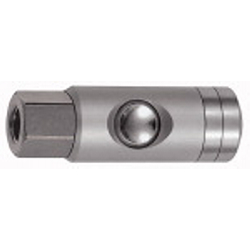 Druckknopf-Sicherheitskupplung NW 5,5, ARO210, drehbar, Alu, G 1/4 IG, Betriebsdruck max. 12 bar, Med.-/Umgeb.temp. -20°C bis 70°C. Hochwertige, robuste und langlebige, mit einer Hand bedienbare Schnellverschlusskupplung in Sicherheitsausführung. Beim ersten Drücken erfolgt die Entlüftung der Kupplung, der Stecker bleibt in der Kupplung gesichert. Nach dem zweiten Drücken wird der Stecker gelöst. Somit wird der berüchtigte Peitschenhiebeffekt verhindert und das Risiko der Verletzung des Bedienpersonals praktisch ausgeschlossen.