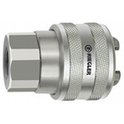 Dreh-Sicherheitskupplung NW 11, schwere Reihe, Stahl, G 1/2 IG, 2-stufig, Betriebsdruck max. 25 bar, Temp. -20 °C bis 100 °C. Hochwertige, robuste und langlebige Dreh-Sicherheitskupplung in schwerer Ausführung, für extrem raue Bedingungen. Um eine sichere Verbindung zwischen Kupplung und Stecker herzustellen, muss der Stecknippel in die Kupplung eingeführt und nach rechts gedreht werden bis der Mechanismus hörbar einrastet. Entkuppelt wird die Verbindung, indem der Stecknippel nach links gedreht und gleichzeitig der Auslösering nach hinten gezogen wird. Der Stecknippel wird beim Ausstoß von der Sicherheitskammer aufgefangen und erst nach einer weiteren Links- oder Rechtsdrehung um 90° freigegeben.
