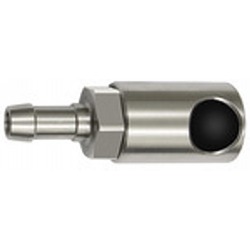 Druckknopf-Sicherheitskupplung NW 8, ISO 6150 C, Edelstahl, Tülle LW 8, Betriebsdruck max. 16 bar, Temp. -20 °C bis 200 °C. Hochwertige, robuste und langlebige, mit einer Hand bedienbare Schnellverschlusskupplung in Sicherheitsausführung. Beim ersten Drücken erfolgt die Entlüftung der Kupplung, der Stecker bleibt in der Kupplung gesichert. Nach dem zweiten Drücken wird der Stecker gelöst. Somit wird der berüchtigte Peitschenhiebeffekt verhindert und das Risiko der Verletzung des Bedienpersonals praktisch ausgeschlossen.