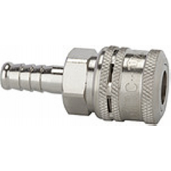 Sicherheitskupplung NW 7,8, Typ SEK, Messing vern., Tülle LW 8, Betriebsdruck 0-35 bar, Mediums-/Umgebungstemp. -10 °C bis 60 °C. Einhand-Sicherheitskupplung mit zweifacher Verriegelung. Das Kuppeln erfolgt wie bei Standardkupplungen durch einfaches Eindrücken des Steckers in die Kupplung. Beim Entkuppeln wird die erste Verriegelung durch Zurückschieben der Verriegelungshülse freigegeben. Das Kupplungsventil schließt. Jetzt kann die komprimierte Luft aus dem Stecker (Schlauch) entweichen. Durch nochmalige Betätigung der Entriegelungshülse wird das zweite Verriegelungssystem freigegeben. Erst jetzt kann die Verbindung gelöst werden.