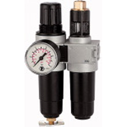 Wartungseinheit 2-tlg. »multifix-mini« mit Metallbehälter, BG 0, G 1/8, Eingangsdruck max. 12 bar, Regelbereich 0,5 - 10 bar. Zweiteilige Wartungseinheiten, bestehend aus einem vordruckunabhängigen Membrandruckregler mit Sekundärentlüftung in Verbindung mit einem Zentrifugalabscheider und einem Proportionalöler.