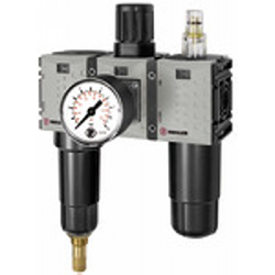 Wartungseinheit 3-tlg. »FUTURA-mini« Metallbehälter, Standardmano, BG 0, G 1/4, PE 1,5-12 bar, Regelbereich 0,5-10 bar, Ablass: VA. Dreiteilige Wartungseinheiten in modernem Design und mit hervorragenden Durchflusswerten. Arretierbarer Membrandruckregler mit Sekundärentlüftung.