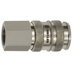 Schnellverschlusskupplung NW 10, Stahl/Messing vern., G 3/8 IG, Betriebsdruck 0-35 bar, Mediums-/Umgebungstemp. -20 °C bis 100 °C. Einseitig absperrende und robuste Schnellverschlusskupplung mit hoher Durchflussleistung. Um Verletzungen oder den Peitschenhiebeffekt zu vermeiden, empfehlen wir den Stecknippel beim Entkuppeln mit einer Hand festzuhalten.