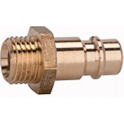 Nippel für Kupplungen NW 7,2 - 7,8, Messing blank, G 1/8 AG, Betriebsdruck 0-35 bar, Mediums-/Umgebungstemp. -20 °C bis 100 °C.