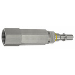 Unverwechselbarer Nippel NW 6, ISO 6150 C, mit Rückschlagventil, ES, 2-stufig, G 3/8 IG, gelb, max. 25 bar, Temp. -15°C bis 200°C.