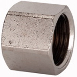 Verschlusskappe (Sechskant-Ausführung), G 1 1/4, SW 47, Messing vernickelt, Arbeitsdruck max. 25 bar, Betriebstemp. max. 150 °C. Für Luft, Wasser, Öl, Dampf etc. einsetzbar.