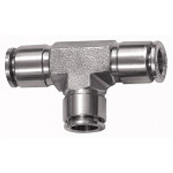 T-Steckverbindung, für Schlauch-Außen-Ø 10 mm, Arbeitsdruck max. 20 bar, Edelstahl 1.4404. Für den Einsatz in aggressiven Umgebungen und bei korrosiven Medien, welche sowohl in der Chemie- und Lebensmittelindustrie als auch im Bereich Verpackung, Druckerei und Seefahrt zum Einsatz kommen.
