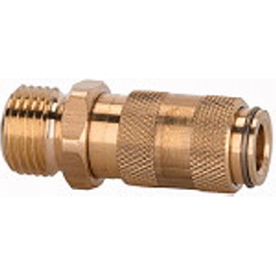 Schnellverschlusskupplung NW 2,7, Messing blank, G 1/8 AG, Betriebsdruck 0 - 35 bar, Mediums-/Umgebungstemp. -20 °C bis 100 °C. Einseitig absperrende Einhand-Schnellverschlusskupplung mit extrem kleinen Baumaßen und großem Durchgang bei geringem Druckabfall. Um Verletzungen oder den Peitschenhiebeffekt zu vermeiden, empfehlen wir den Stecknippel beim Entkuppeln mit einer Hand festzuhalten.