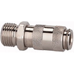 Schnellverschlusskupplung NW 2,7, Messing vern., G 1/8 AG, Betriebsdruck 0 - 35 bar, Mediums-/Umgebungstemp. -20 °C bis 100 °C. Einseitig absperrende Einhand-Schnellverschlusskupplung mit extrem kleinen Baumaßen und großem Durchgang bei geringem Druckabfall. Um Verletzungen oder den Peitschenhiebeffekt zu vermeiden, empfehlen wir den Stecknippel beim Entkuppeln mit einer Hand festzuhalten.