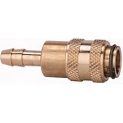 Schnellverschlusskupplung NW 5, Messing blank, Tülle LW 6, Betriebsdruck 0 - 35 bar, Mediums-/Umgebungstemp. -20 °C bis 100 °C. Einseitig absperrende Einhand-Schnellverschlusskupplung mit kleinen Baumaßen und großem Durchgang bei geringem Druckabfall. Um Verletzungen oder den Peitschenhiebeffekt zu vermeiden, empfehlen wir den Stecknippel beim Entkuppeln mit einer Hand festzuhalten.