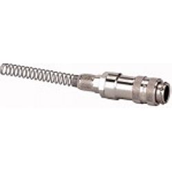 Schnellverschlusskupplung NW 5, MS vern., drehbar, Schlauchanschl. 6x4, Betriebsdr. 0-35 bar, Mediums-/Umgeb.temp. -20°C bis 100°C. Einseitig absperrende Einhand-Schnellverschlusskupplung mit kleinen Baumaßen und großem Durchgang bei geringem Druckabfall. Um Verletzungen oder den Peitschenhiebeffekt zu vermeiden, empfehlen wir den Stecknippel beim Entkuppeln mit einer Hand festzuhalten.