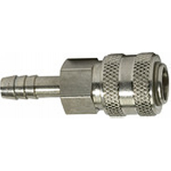 Schnellverschlusskupplung NW 5 »connect line«, MS vern., Tülle LW 4, Betriebsdr. 0 - 35 bar, Mediums-/Umgeb.temp. -20°C bis 100°C. Preiswerte, einseitig absperrende Einhand-Schnellverschlusskupplung mit kleinen Baumaßen und großem Durchgang bei geringem Druckabfall. Um Verletzungen oder den Peitschenhiebeffekt zu vermeiden, empfehlen wir den Stecknippel beim Entkuppeln mit einer Hand festzuhalten.