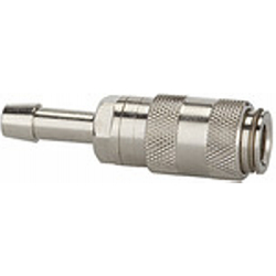 Schnellverschlusskupplung NW 2,7, Edelstahl 1.4305, Tülle LW 3, Betriebsdruck 0-35 bar, Mediums-/Umgebungstemp. -20 °C bis 200 °C. Einseitig absperrende Einhand-Schnellverschlusskupplung mit extrem kleinen Baumaßen und großem Durchgang bei geringem Druckabfall. Um Verletzungen oder den Peitschenhiebeffekt zu vermeiden, empfehlen wir den Stecknippel beim Entkuppeln mit einer Hand festzuhalten.