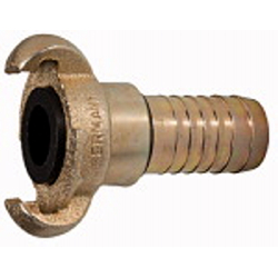 Klauenkupplung mit Schlauchanschluss, LW 13 (1/2"), drehbar, Temperguss verzinkt und gelb passiviert, PN max. 10 bar. Die universelle Standardkupplung zur Druckluftversorgung am Bau und in der Industrie, in der Standardausführung nach DIN 3489, weltweit verwendet und überall im Einsatz.