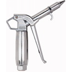 Hochleistungs-Blaspistole »Typhoon pro«, Aluminium verchromt, PN max. 10 bar, G 1/4 innen. Stufenlos regelbare und ergonomisch hervorragende Hochleistungs-Blaspistole in Vollmetallausführung mit ausgesprochen starker Blasleistung. Gegenüber herkömmlichen Standardpistolen hat die »Typhoon pro« eine ca. 3-fach höhere Blasleistung und liegt auch bei voller Druckbeaufschlagung leicht und sicher in der Hand. Resistent gegen Chemikalien und chemische Lösungsmittel, auf Grund der verchromten Oberfläche leicht zu reinigen!