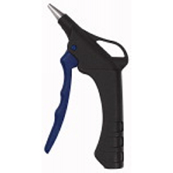 Blaspistole, Kunststoff, mit Kurzdüse, G 1/4 innen, Betriebstemperatur -20 °C bis 45 °C, PN max. 10 bar. Zum Ausblasen und Reinigen von Maschinen, Motoren, Lagern, Gleitflächen, Bohrungen aller Art, Hohlkörpern, Formen usw. Die Blaspistolen werden in einer Blister-Verpackung mit Eurolochung geliefert.