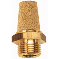 Sinterbronce-Schalldämpfer, Messing Gewinde/Sechskant, G 1, SW 36 mm, Betriebsdruck 0 - 8 bar, Betriebstemp. -10 °C bis 250 °C. Zur Reduzierung von Abluftgeräuschen an pneumatischen Anlagen.