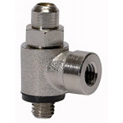 Drosselrückschlagventil, Abluftdrosselung (»C«) Gewindeanschluss G 1/2 i., G 1/2, PN max. 10 bar, Temp. 0 °C bis 70 °C, MS vern.. Zur feinen Regulierung der Kolbengeschwindigkeit von Zylindern und Durchflussmengen. Ausführung in Hohlschraubenbauweise mit Ringstück. Zum direkten Einschrauben am Ventil oder Zylinder. Kleine Baumaße, ideal bei engen Platzverhältnissen.