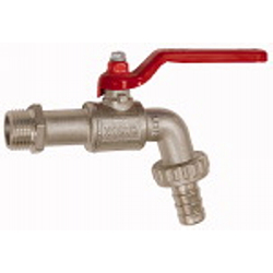 Kugelauslaufhahn, Messing vernickelt, Temperaturbereich -20 °C bis 80 °C, G 3/4 AG, DN 20, PN max. 15 bar. Mit Schlauchtülle.