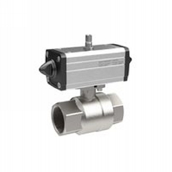 Messing-KH, pneum. Stellantrieb, doppeltw., MSV, Betriebstemp. KH -20 °C bis 150 °C, Rp 1/2, DN 15, PN max. 16. Messingkugelhahn mit pneumatischem Stellantrieb.