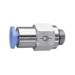 Ger. Rückschlagventil »Blaue Serie«, Gew. zu Schl., G 3/8 a., für Schl.-Außen-Ø 12 mm, Arbeitsdr. max. 10 bar, Kunststoff/MS vern.. Die Rückschlagfunktion dieser Schnellsteckverbindungen verhindert den Rückfluss des Luftstroms und lässt auf Grund der unidirektionalen Bauweise die Strömung der Luft nur in eine Richtung zu. Die Teile sind lieferbar in Ausführung: Durchfluss vom Gewinde zum Schlauch bzw. vom Schlauch zum Gewinde.