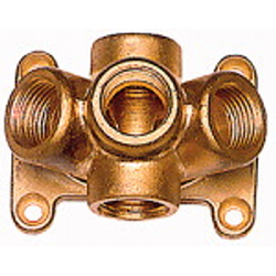 Verteiler zur Wandbefestigung, 5 Anschlüsse G 1/2, je 1 Anschluss rechts und links, 3 Anschlüsse vorne.